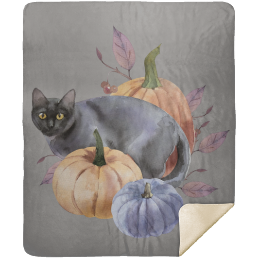 BLACK CAT & PUMPKINS PREMIUM MINK SHERPA 50X60 BLANKET