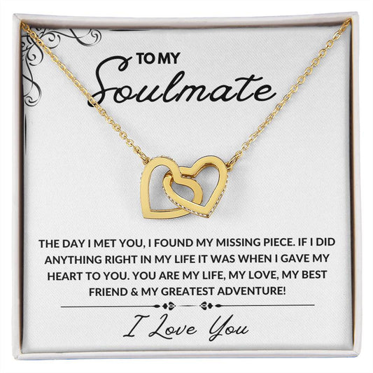 TO MY SOULMATE FOUND MY MISSING PIECE/ INTERLOCKING HEARTS NECKLACE