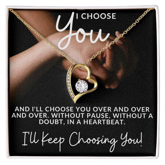 I CHOOSE YOU- AND I'LL CHOOSE YOU OVER & OVER/FOREVER LOVE HEART NECKLACE