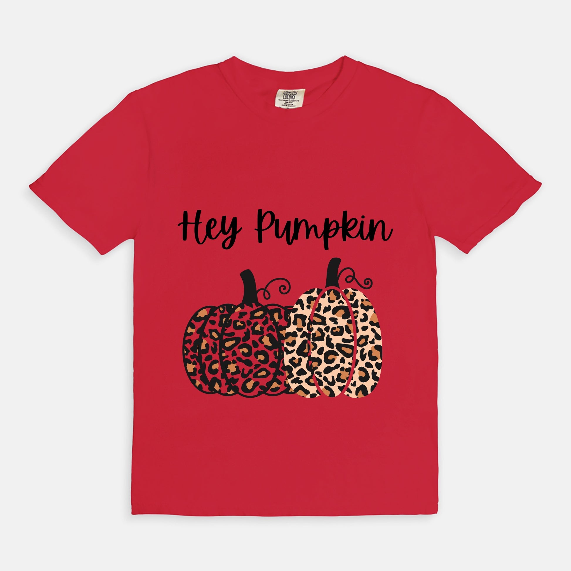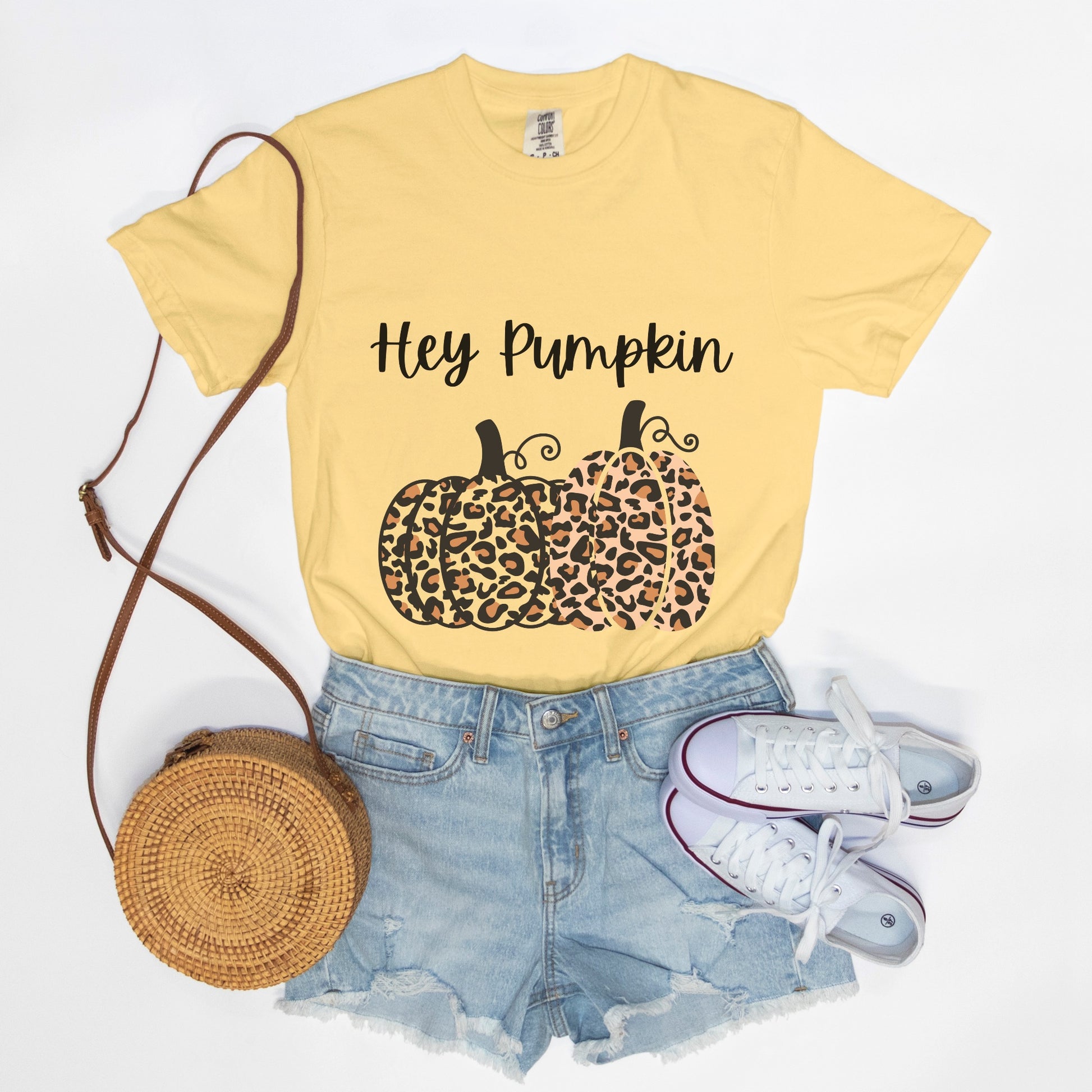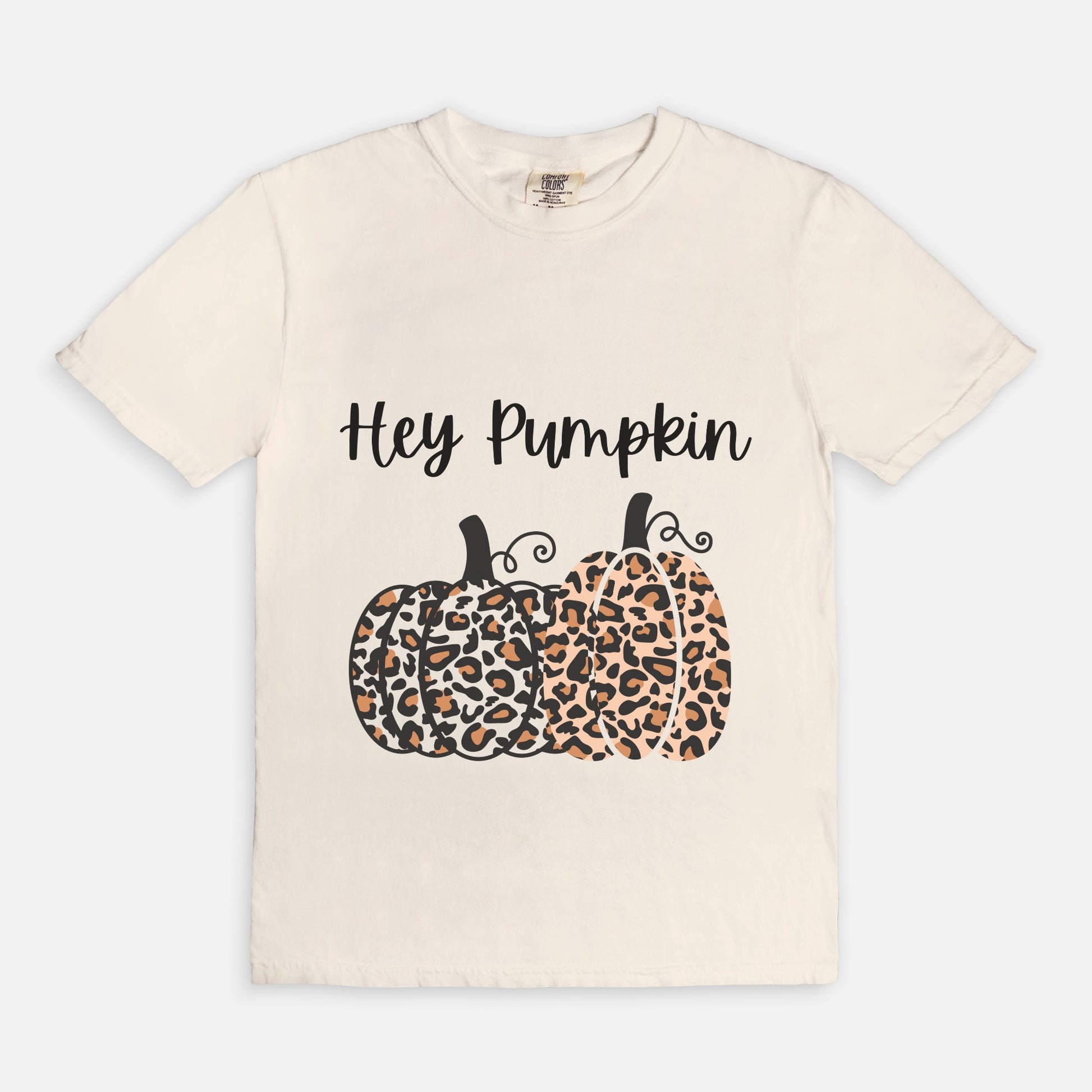 Hey Pumpkin, Elegant Leopard Print Pumpkin Ladies Soft Relaxed Comfort Colors Tshirt Fall October